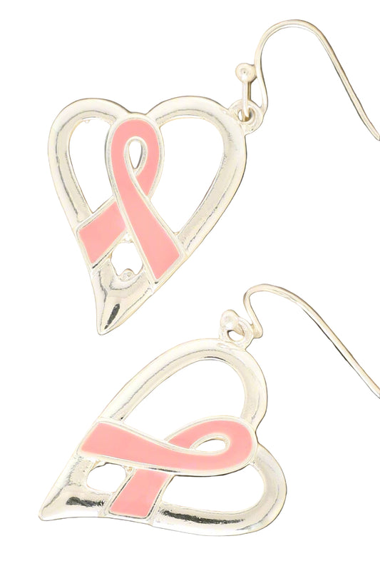 Breast Awareness Cancer Pink Ribbon Heart Earrings