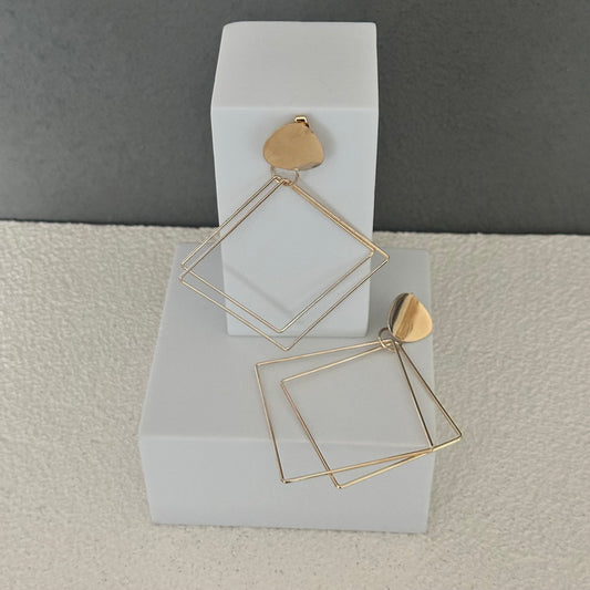 14K GOLD DIPPED OPEN TRIANGLE SHAPE SILVER EARRINGS