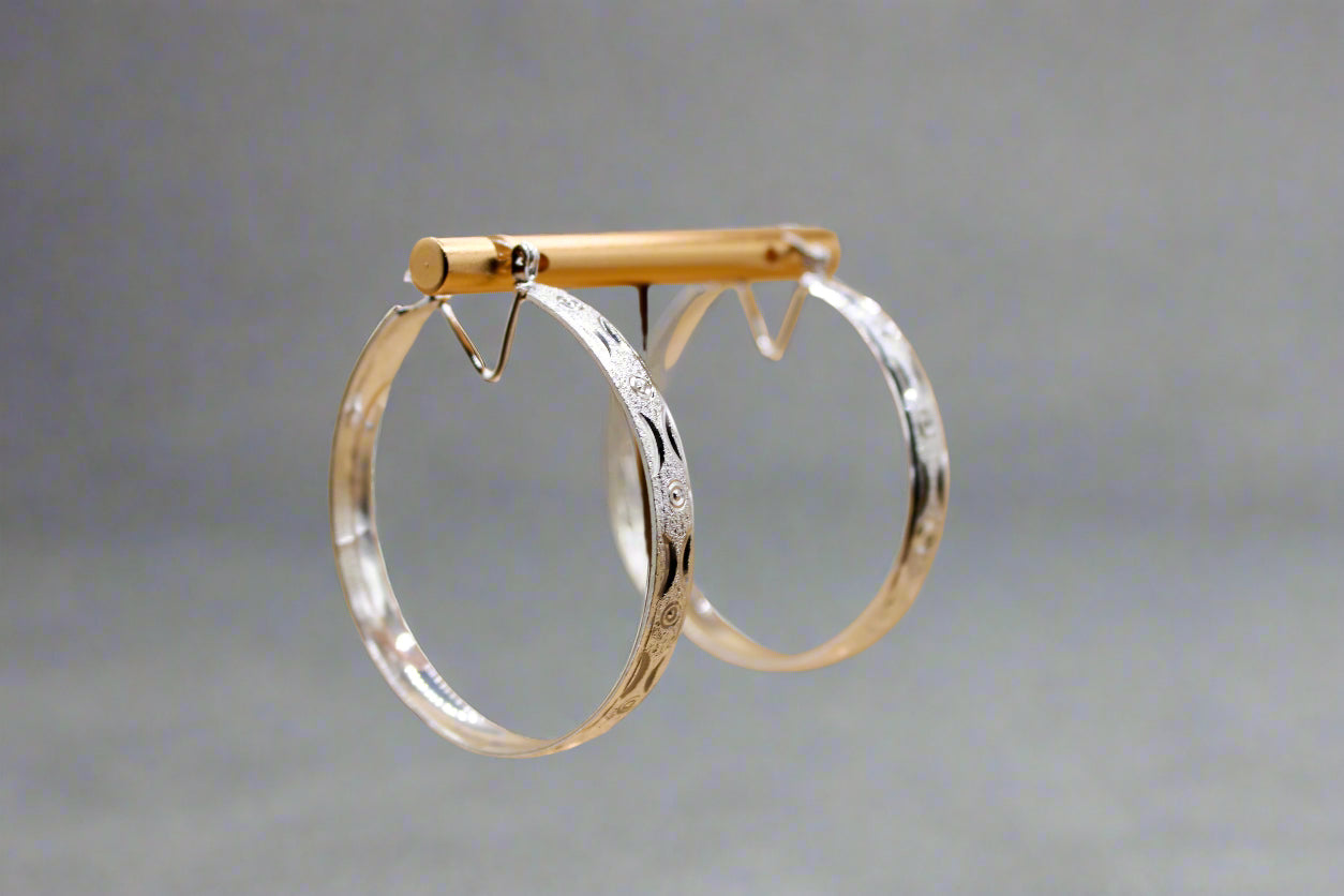 Add timeless charm to your look with our Classic Silver Hoops With A Touch. Made from hypoallergenic sterling silver with delicate etched detailing, these elegant hoops are perfect for everyday wear or special occasions.