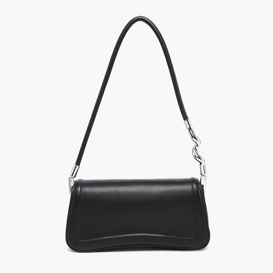 Modern edge meets everyday elegance. The Toronto Shoulder Bag is designed to make a statement wherever you go, effortlessly blending sleek sophistication with a touch of boldness. Its sculpted curved silhouette offers a refined, fashion-forward shape that catches the eye from every angle. The twisted metal strap adds a modern, architectural feel—striking the perfect balance between statement accessory and timeless essential.