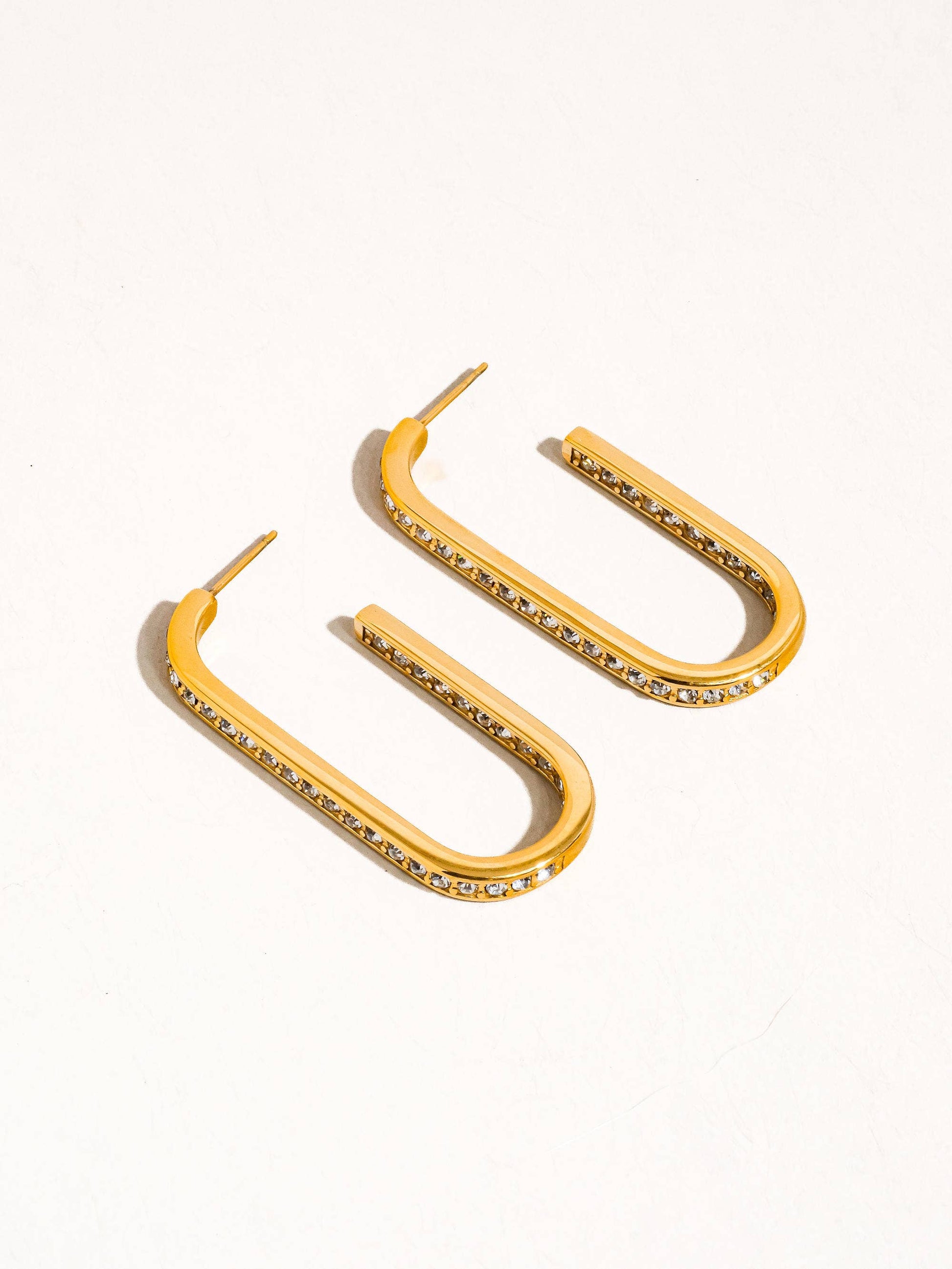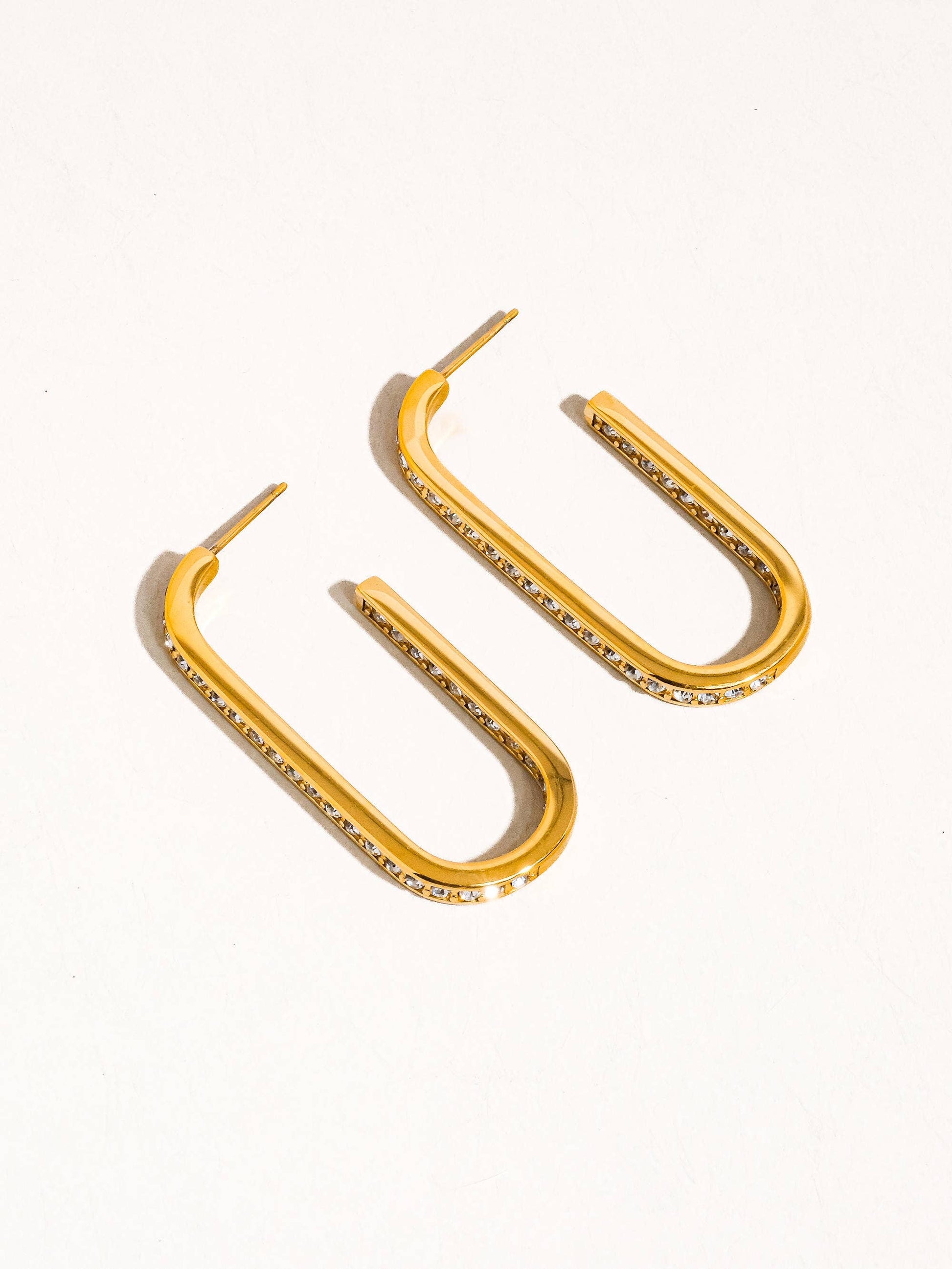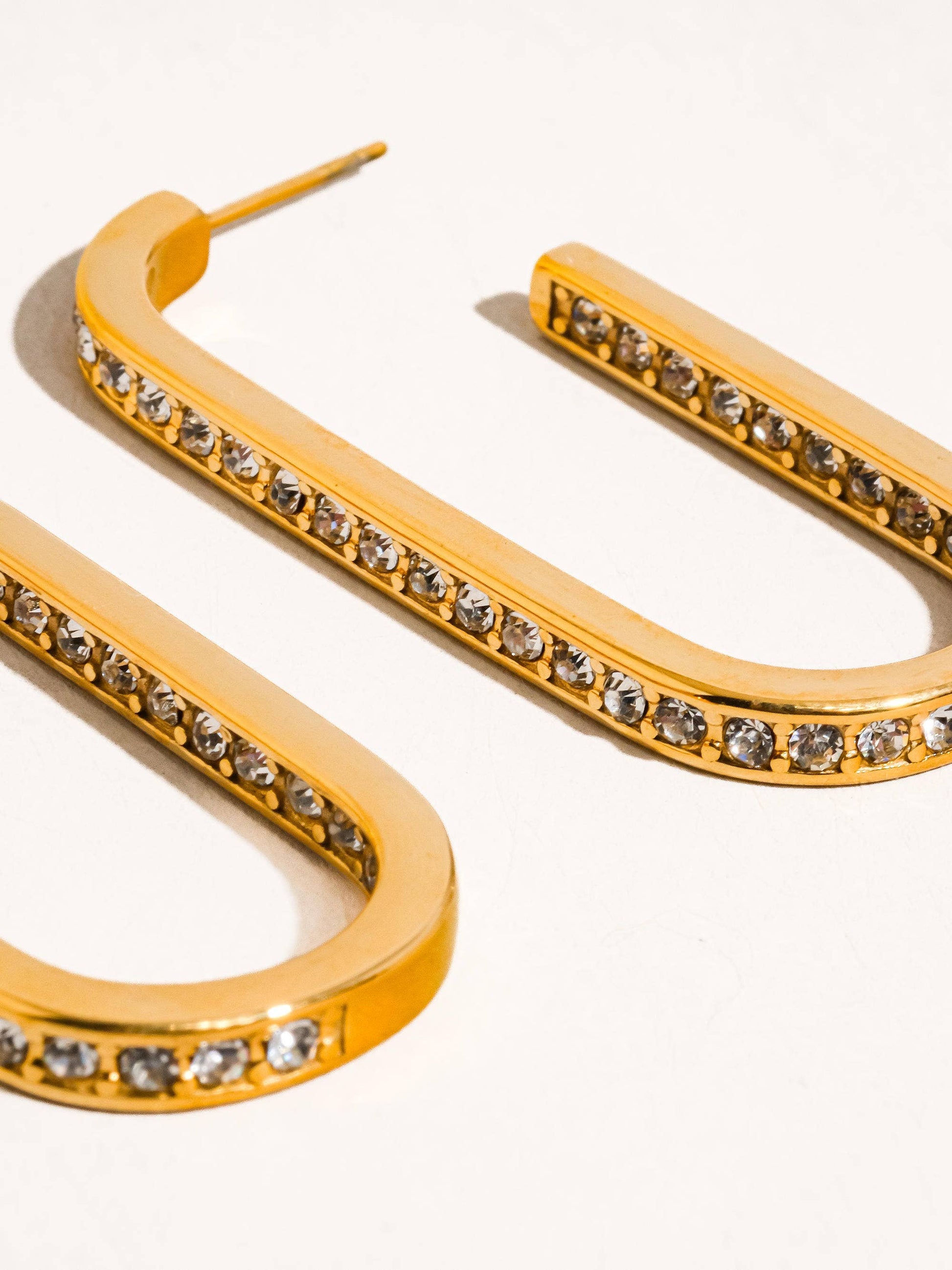 The U-shaped hoop offers a modern yet classic silhouette, providing a comfortable fit that enhances your natural style. Embedded with sparkling cubic zirconia stones, these earrings add a touch of glamour and sophistication to your look.