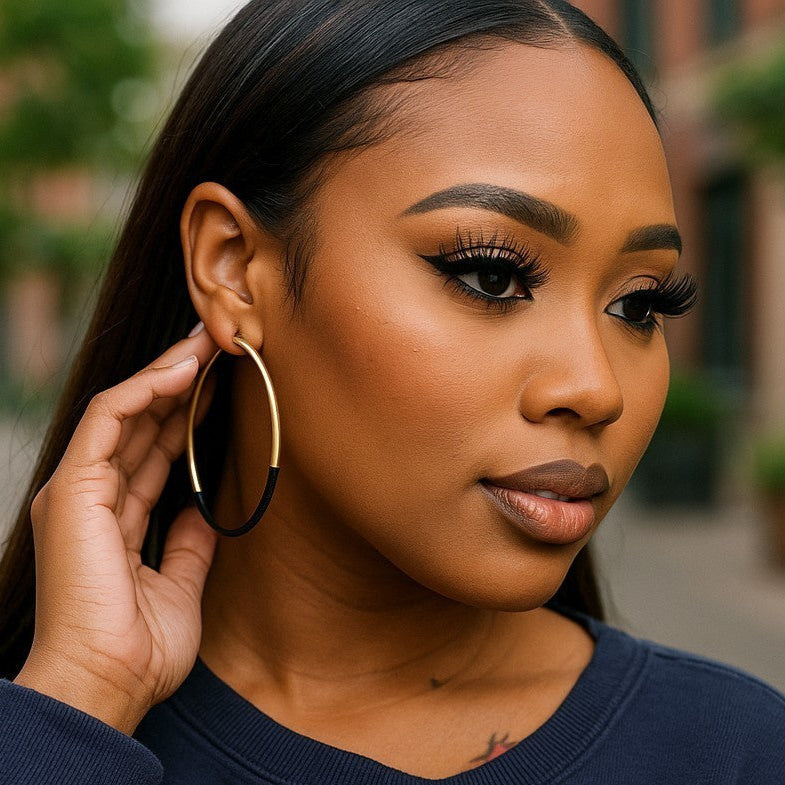 Upgrade your jewelry collection today with these versatile Black/ Gold Skinny Hoop Earrings and make a stylish statement wherever you go. Don’t miss out—add them to your cart now and embrace a chic, confident look!