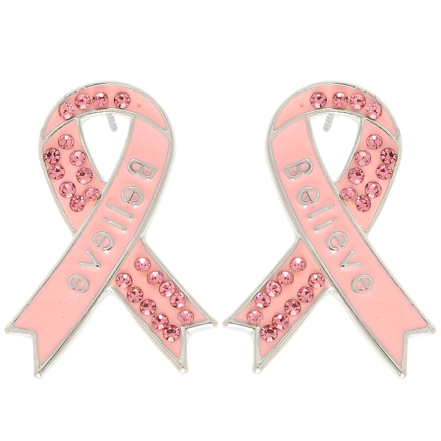 These Breast Cancer Awareness Pink Ribbon Earrings serve as a fashionable way to support breast cancer research and raise awareness. Made with a delicate pink ribbon design, they are a subtle statement to show your support. 10% of all proceeds will be donated to breast cancer research.