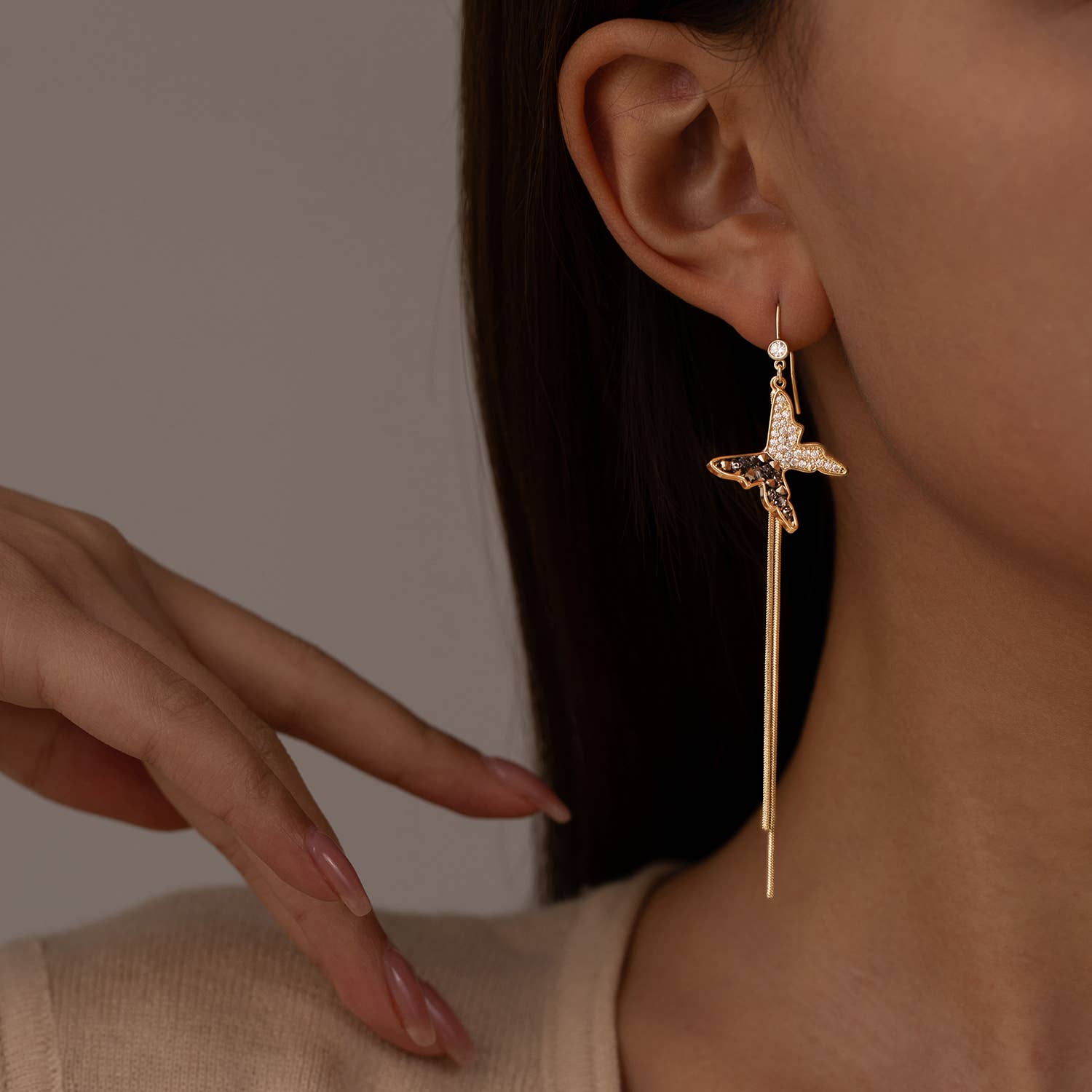 Transform your look effortlessly with our stunning Butterfly Dangle Earrings with Rhinestone Design. These earrings are meticulously crafted to combine delicate elegance with eye-catching brilliance, making them an ideal choice for both everyday wear and special occasions.