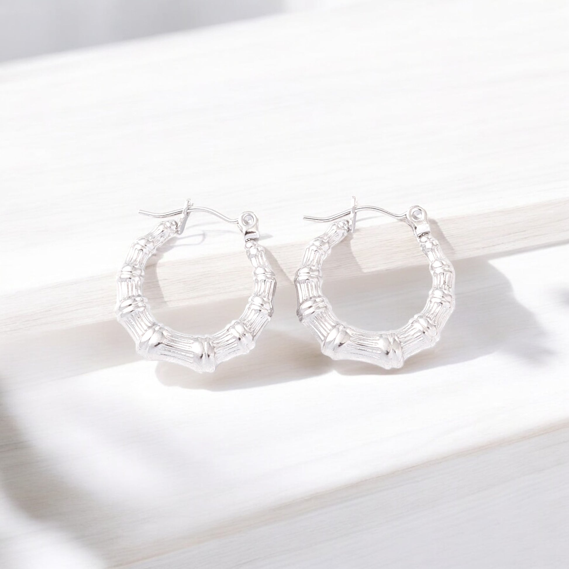 Discover the bold elegance of our Chunky Chunk Bamboo Hoop Earrings, expertly crafted for women who want to make a stylish statement. Made from high-quality non-tarnish 304 stainless steel, these earrings combine durability with a sleek, modern look that lasts over time.