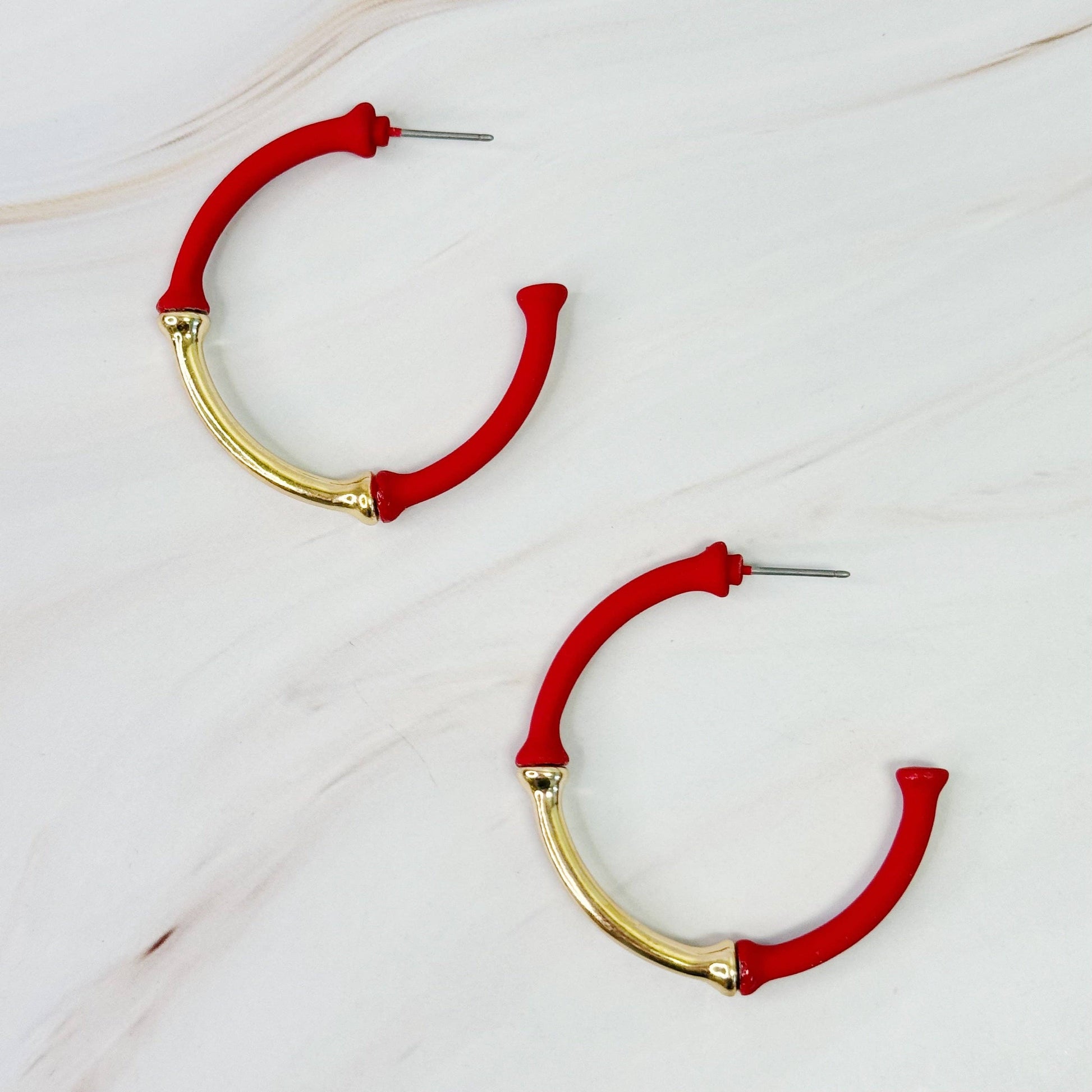 Enhance your jewelry collection with these eye-catching bamboo hoop earrings and enjoy a unique accessory that combines sustainability with standout style. Don't miss out—order your Color Me Bold - Red today and make a vibrant statement wherever you go!
