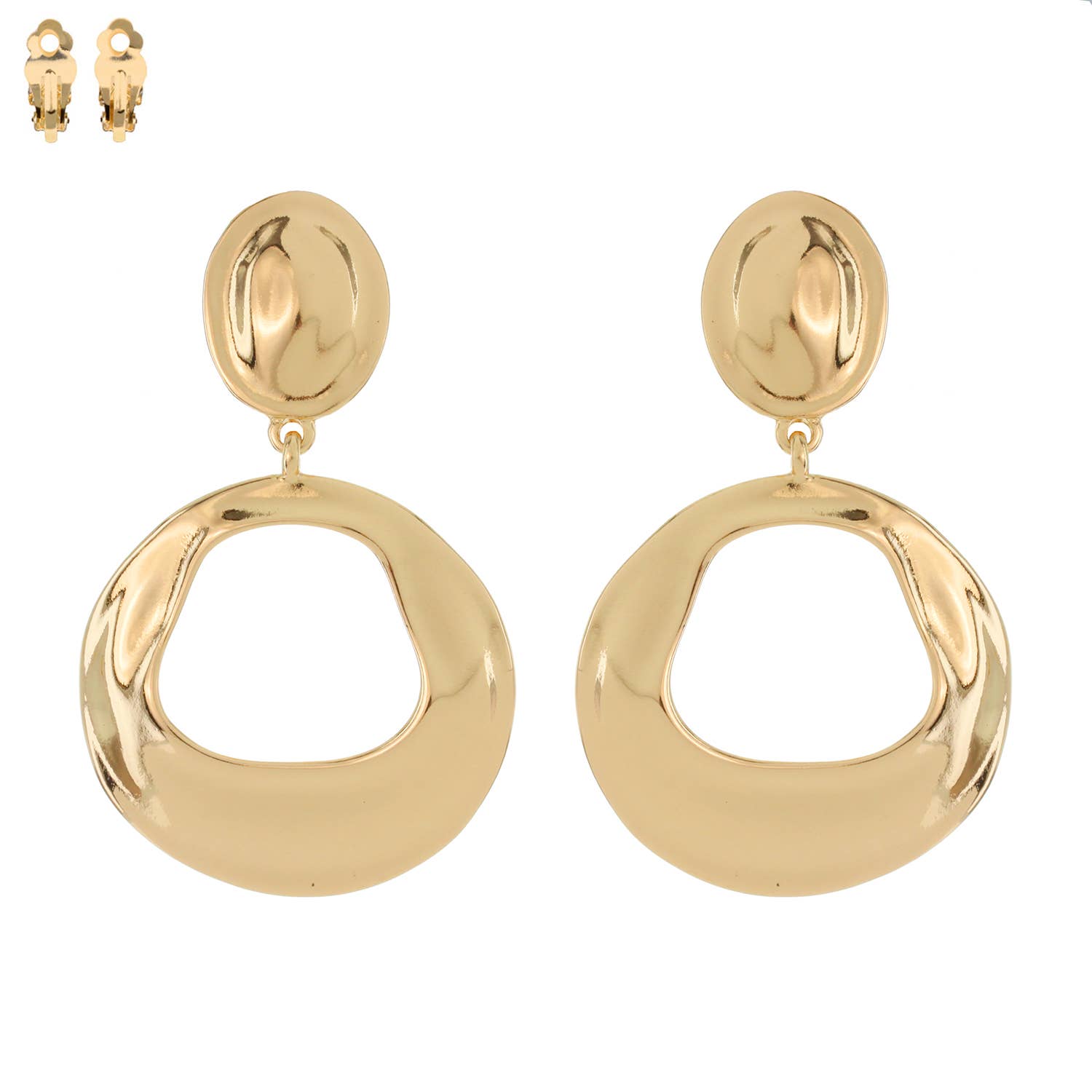 Whether you're dressing up for a night out or adding a touch of edge to everyday wear, these Irregular Open Disc 2 Tier Dangle Clip-On Earrings: Gold are the perfect choice to express your individuality. Upgrade your jewelry collection today and make a statement that’s impossible to ignore.