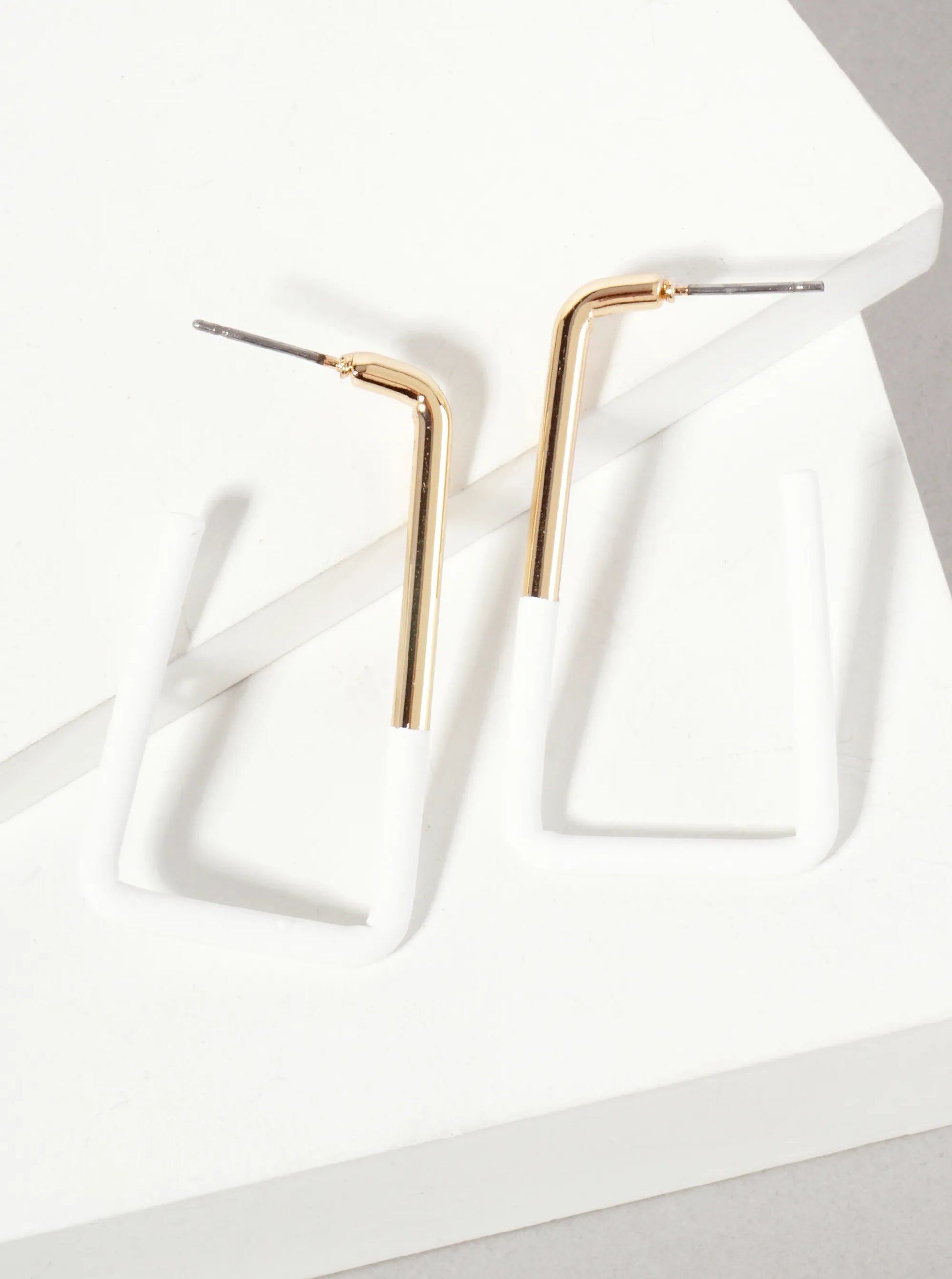 Elevate your accessory game with our Rectangular Hoop Earrings - White, a perfect blend of modern design and versatile style. These statement earrings feature bold, sleek rectangular hoops that command attention while maintaining an effortless sophistication suitable for everyday wear.