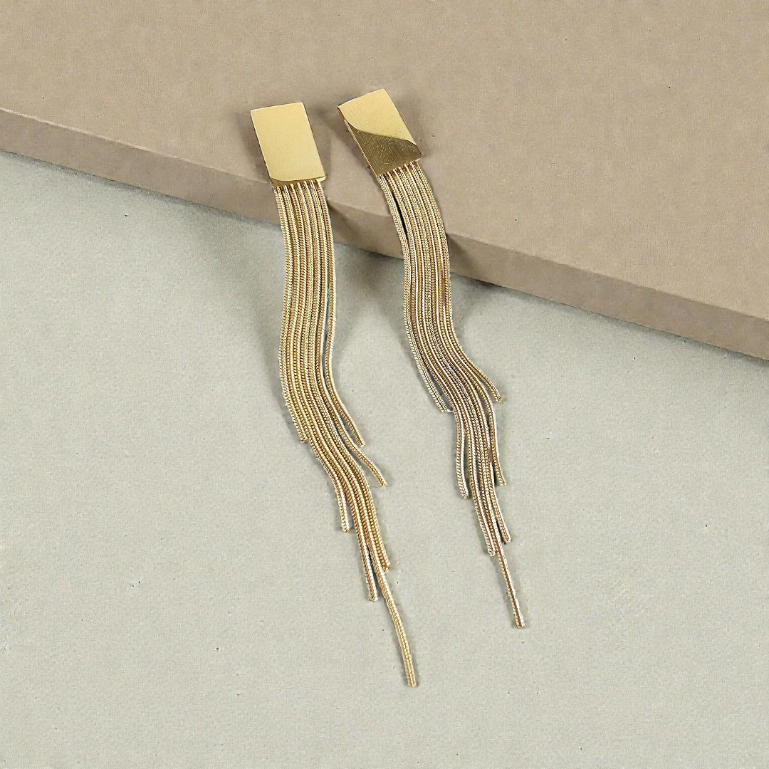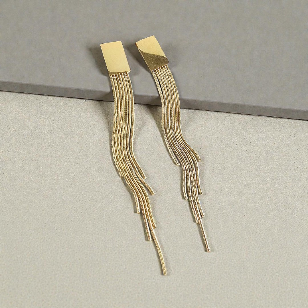 Our Tatiana Earrings, featuring a gold tassel dangle, are coming in hot, and they are going to be your new faves! They're ultra lightweight, so you can wear them all day and night without feeling weighed down – but trust us, they still pack a punch.