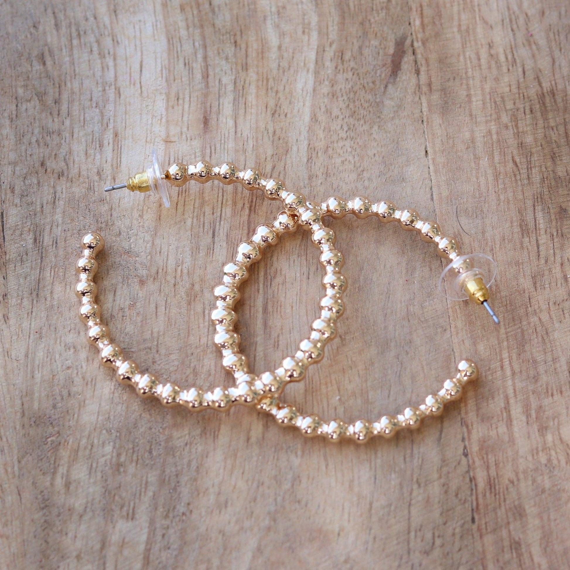 Whether you're dressing up for a night out or adding a sophisticated touch to your casual attire, these Gold Ball Hoop Earrings are a must-have addition to your jewelry collection. Don't miss the chance to showcase your style—order now and experience the effortless elegance they bring to any outfit!
