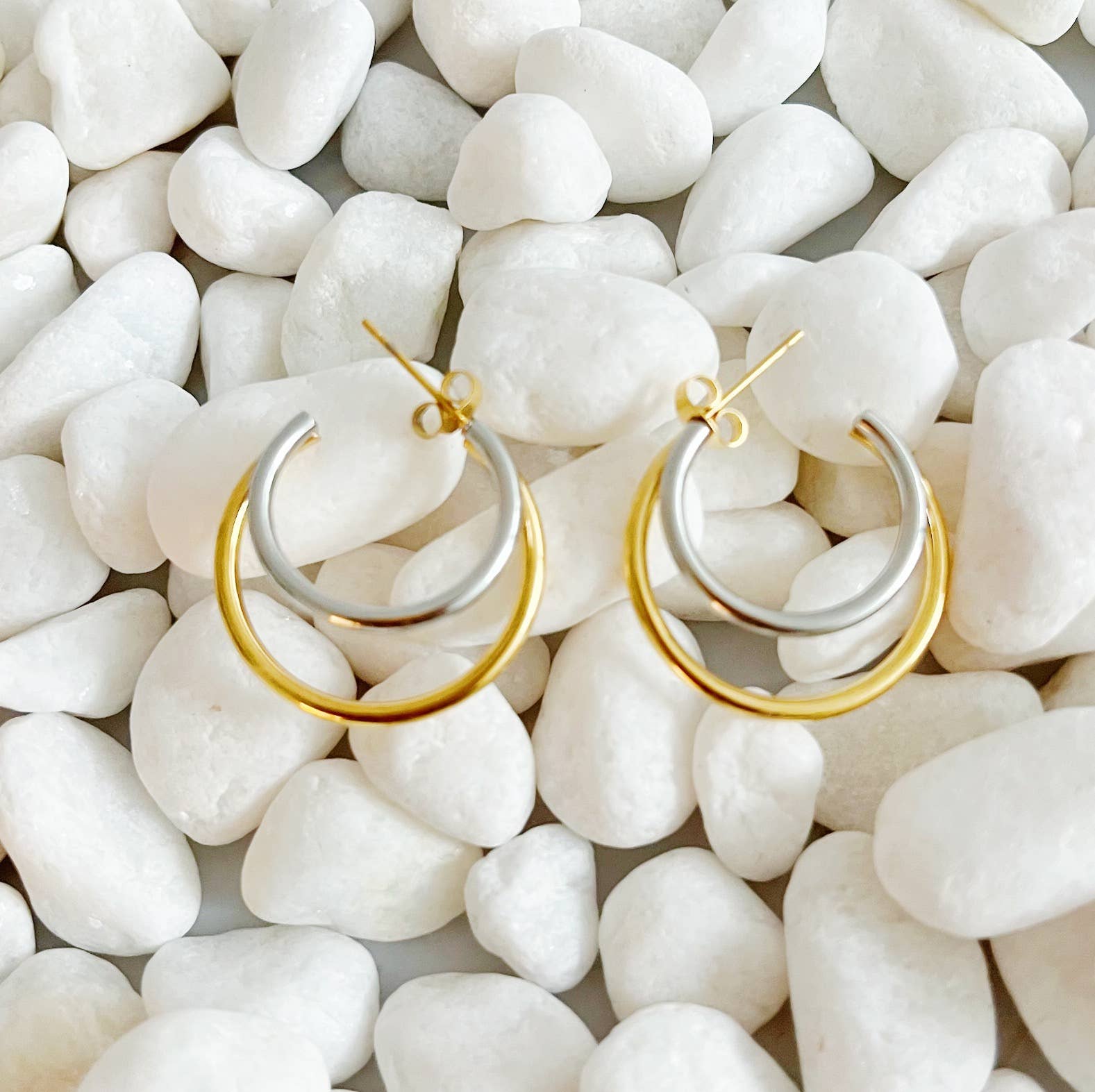 Elevate your jewelry collection with the Uptown Two Tone Hoop Earrings, a stunning accessory that effortlessly combines modern style with timeless elegance. Crafted with precision, these earrings feature a unique two-tone design that adds a sophisticated edge to any outfit, whether you're dressing up for an event or adding a chic touch to your everyday look.