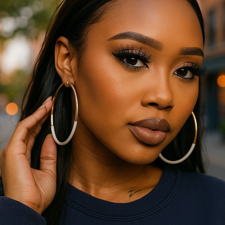Elevate your accessory game with our White/ Gold Skinny Hoop Earrings | Skinny Hoop, featuring a sleek 2-inch diameter design that effortlessly combines modern elegance with everyday comfort. Crafted with a stunning white finish complemented by radiant gold accents, these earrings add a touch of sophistication to any look.